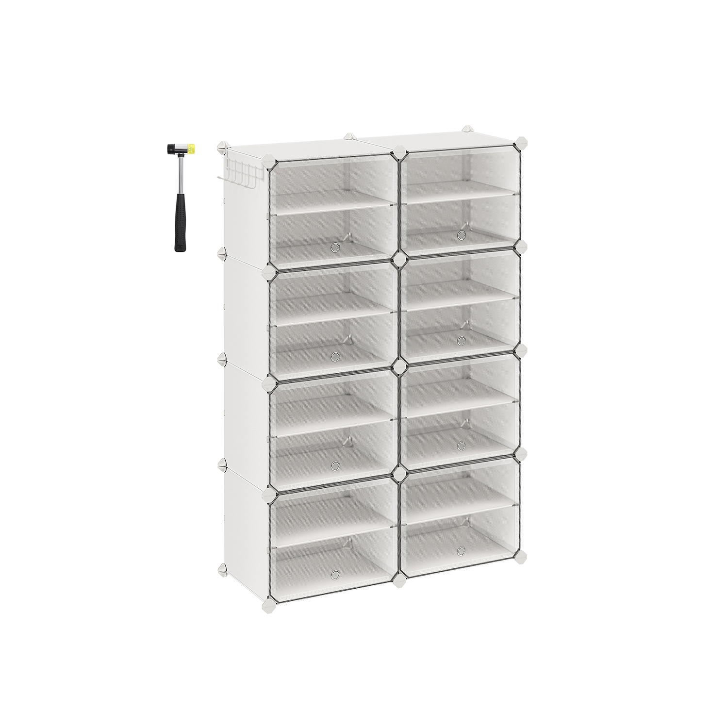Skoreol - fleksibelt opbevaringsskab med 8 rum - stabelbart skoskab i plastik - plastikskab - hvid 32 x 124 x 94 cm