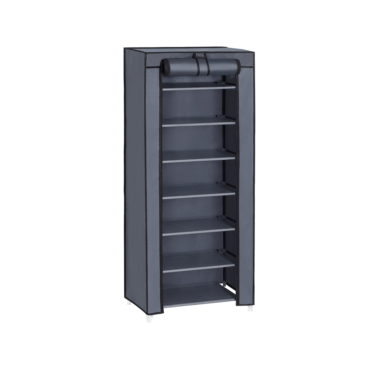 Skoskab - skoreol med støvtæt stofovertræk med 7 hylder til 14 sko - skostativ til skotøj - grå 126 x 46 x 28 cm