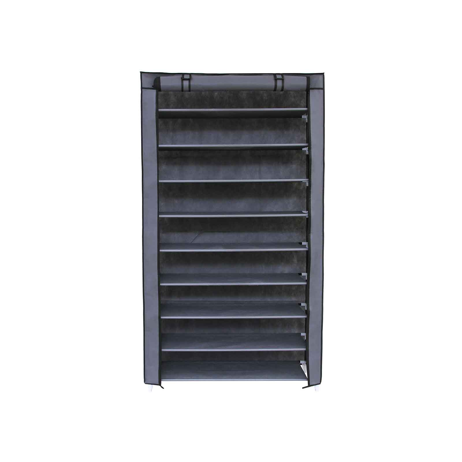 Skoreol med støvtæt stofovertræk - skoskab med 10 hylder til 40 sko - 160 x 88 x 28 cm - grå skostativ til sko