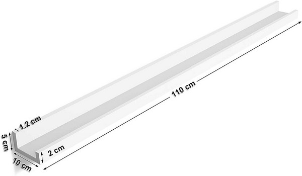 Hylde i træ - væghængt svævende u-formet træhylde - hvid væghylde - boghylde 115 x 10 x 5/2 cm: