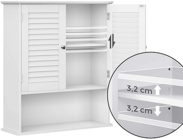 Væghængt badeværelsesskab med hylde - hvid vægskab der passer ind i de fleste badeværelser.