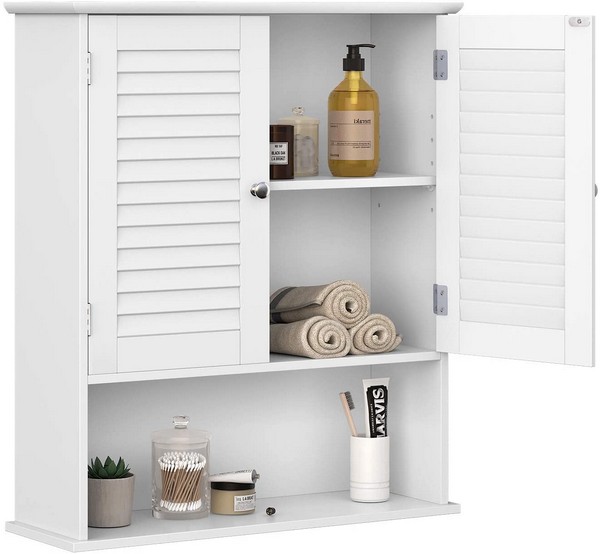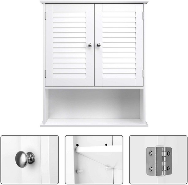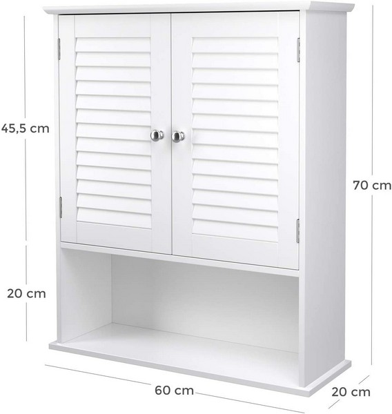 Badeværelsesskab - væghængt vægskab med skab og hylde - hvid overskab 60 x 20 x 70 cm