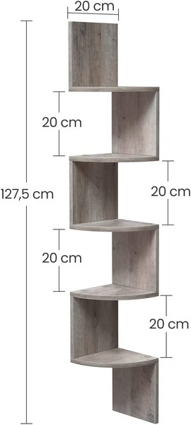 Med en størrelse på 20 x 20 x 127,5 cm, så kan denne væghængte hjørnereol også bruges i små rum.