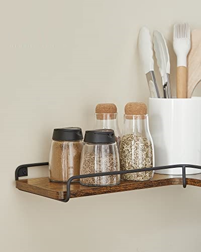 Hylder i træ - 2 væghængte svævende hjørnehylder - rustik brune væghylder - hyldesæt på 2 stk boghylder - 60 x 20 x 7 cm: