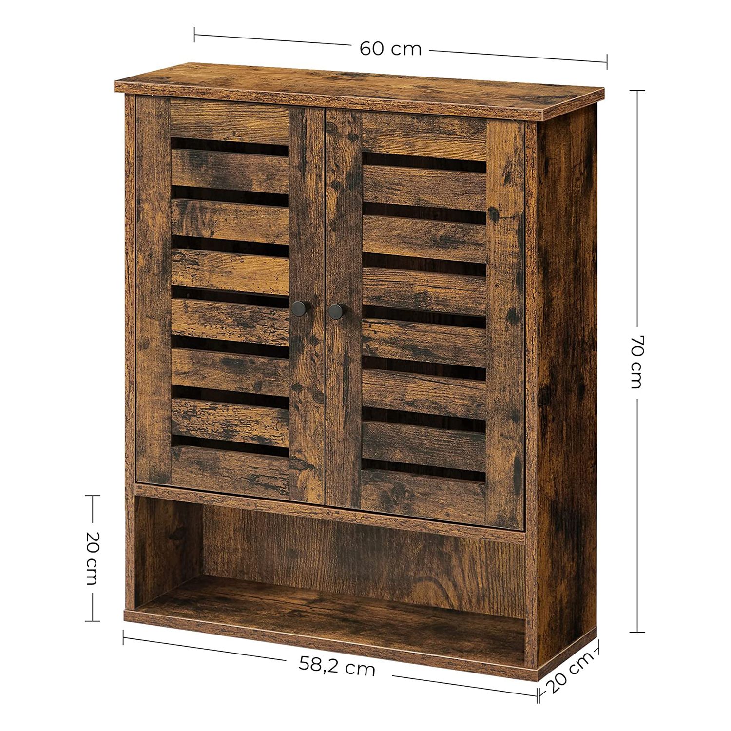 Badeværelsesskab - væghængt skab til badeværelset med skabslåger og justerbare hylder - rustik brun 60 x 20 x 70 cm
