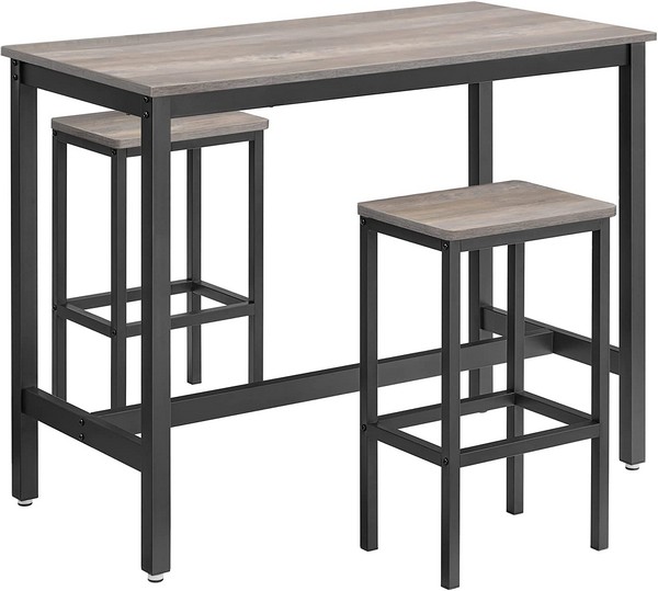 Barbord med 2 skamler - højbord med 2 barstole - industrielt design til køkken og bar - grå beige (greige) barbords sæt