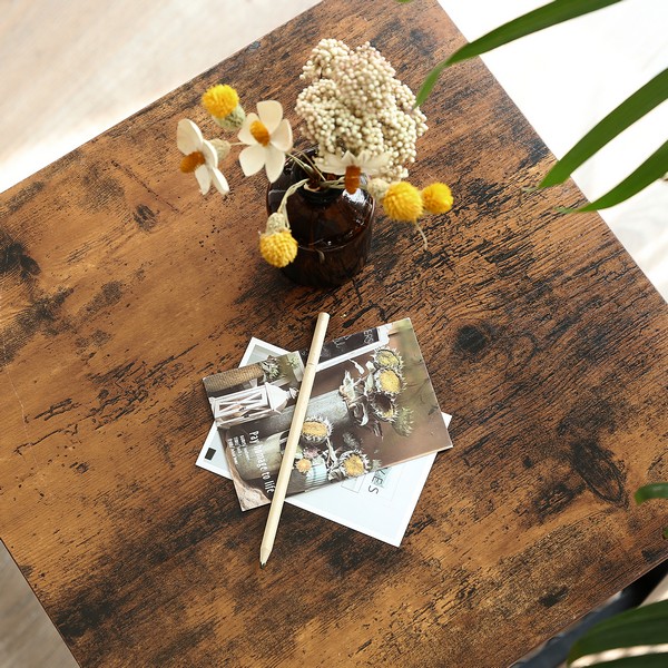 Sidebord i industrielt design med rustik brun firkantet kvadratisk øverste bordplade på 45 x 45 cm. Firkantet kvadratisk sidebord der nemt passer ind de fleste steder i hjemmet - i stuen, entreen, kontoret eller som sengebord i soveværelset eller natbord i børneværelset. Den sorte stel og rustik brune farve, giver natbordet et industrielt design.