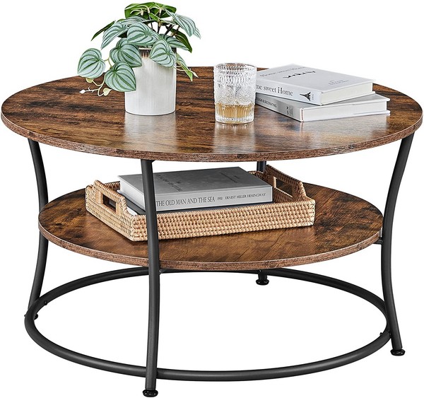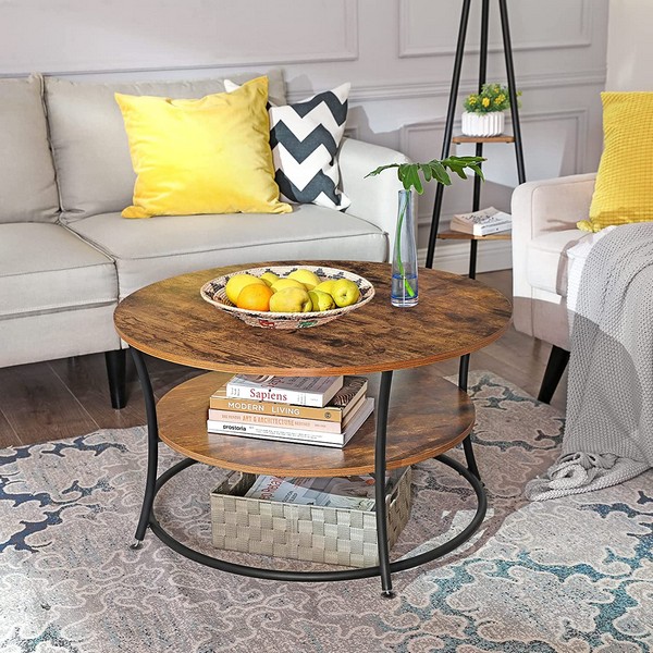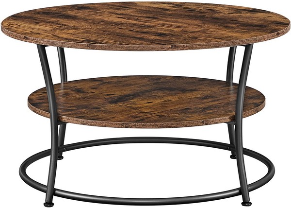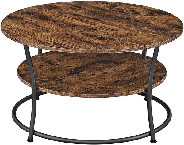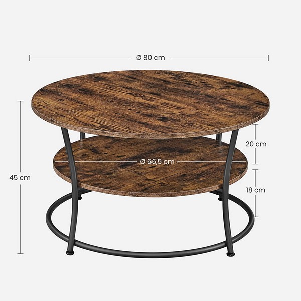 Sofabord med hylde - rundt stuebord i industrielt design - rustik brun Ø80 x H45