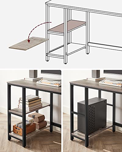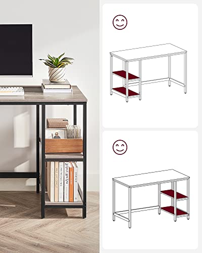 Skrivebord i industrielt design - computerbord med 2 hylder til venstre eller højre - rustik grå/beige (greige) - 120 x 60 x 75 cm