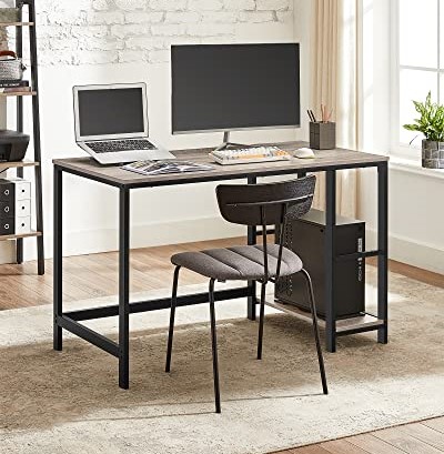 Således får du et rustikt grå/beige computerbord bord i industrielt design, god bordplade med bordplads, justerbare fødder og nem montering. Så forkæl dig selv med dette skrivebord.