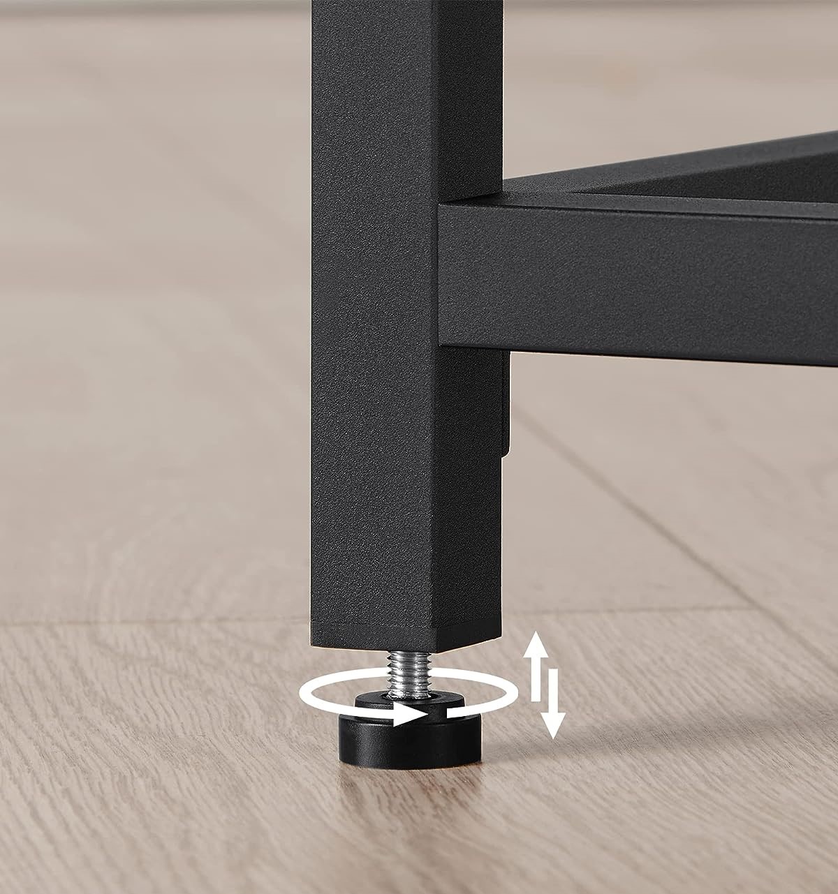 Dette sorte computerbord med justerbare fødder, gør det nemt at sikret computerbordet mod ujævnt gulv, så computerbordet kan stå stabilt.