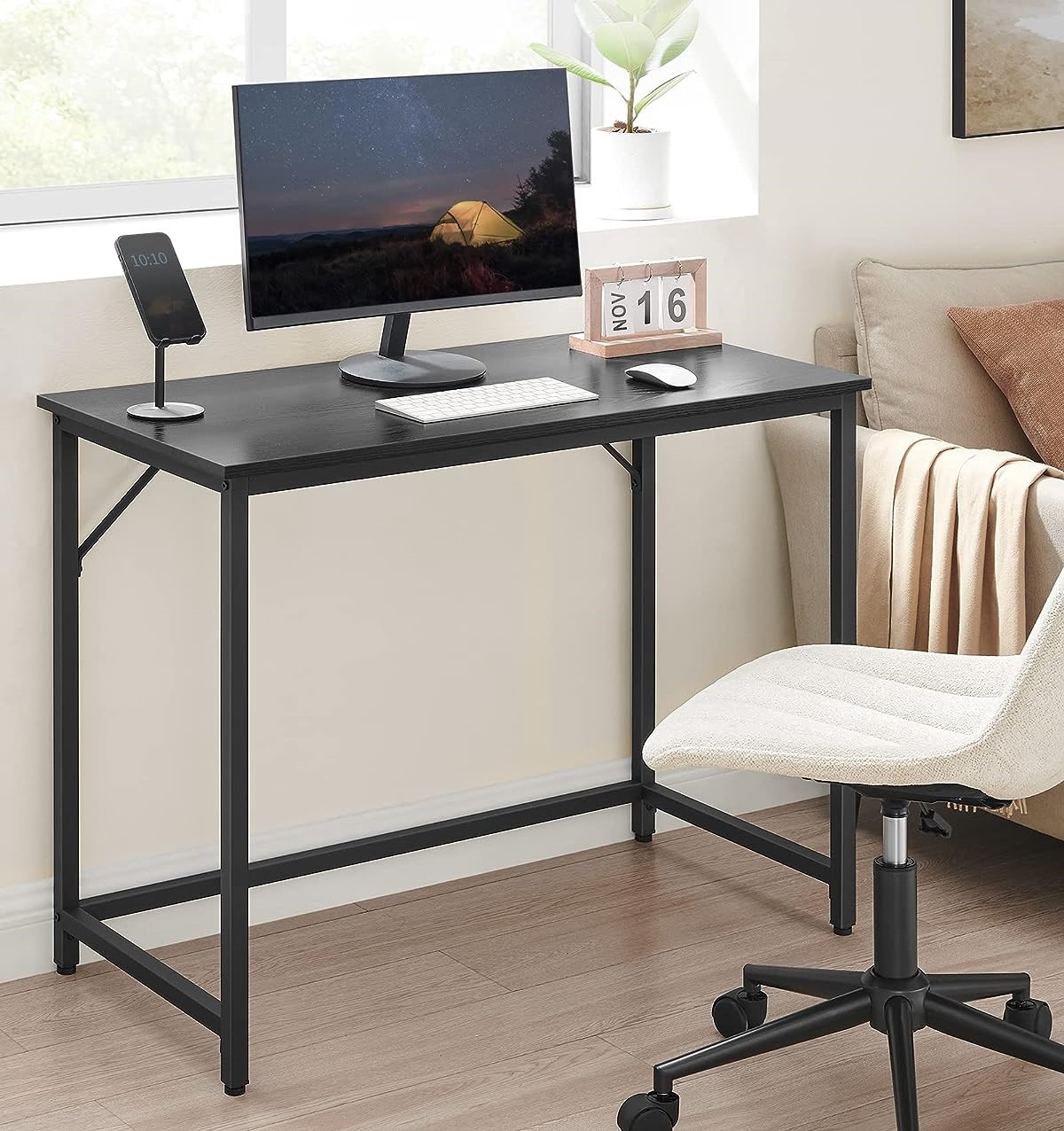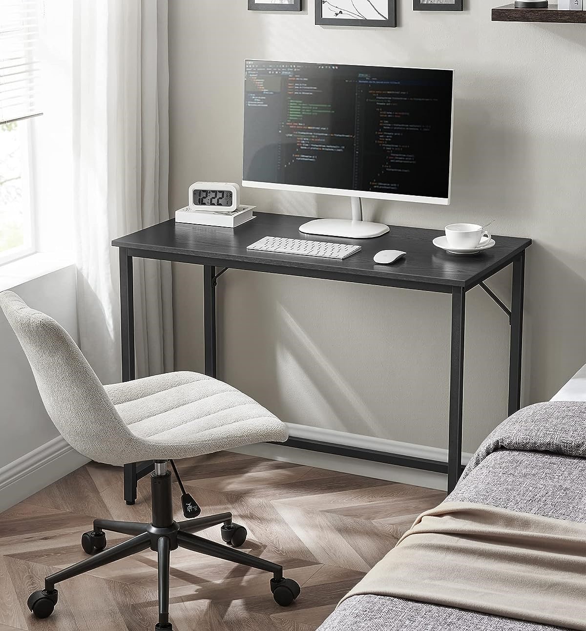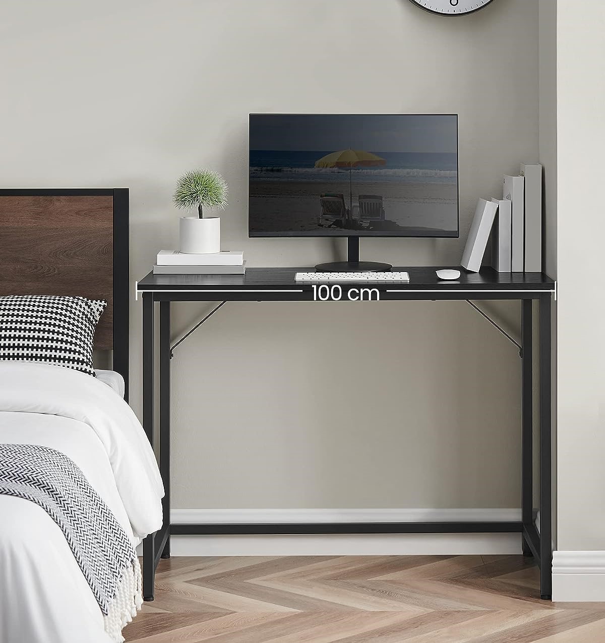 Skrivebord i industrielt design - slank computerbord - sort bordplade med sort metalramme - 100 x 50 x 75 cm