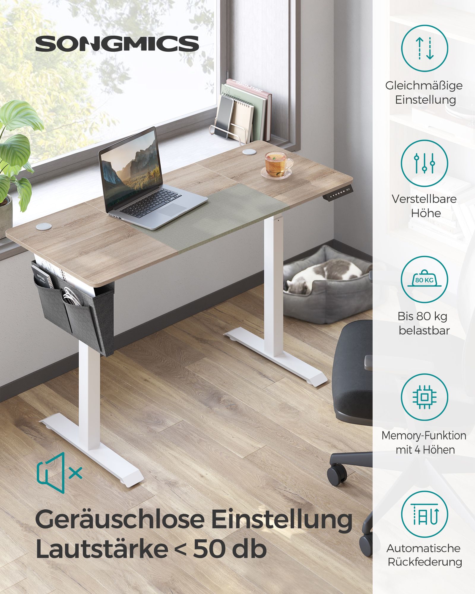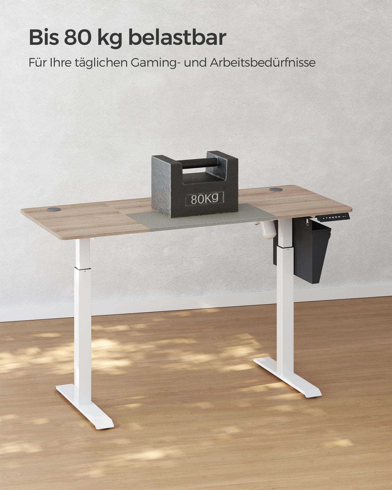 Stabilt hæve sænkebord med lav støjniveau: Dette elektriske hæve sænke skrivebord med robust stålramme, der kan holde op til 80 kg har lavt støjniveau med mindre end 50 dB driftsstøj.