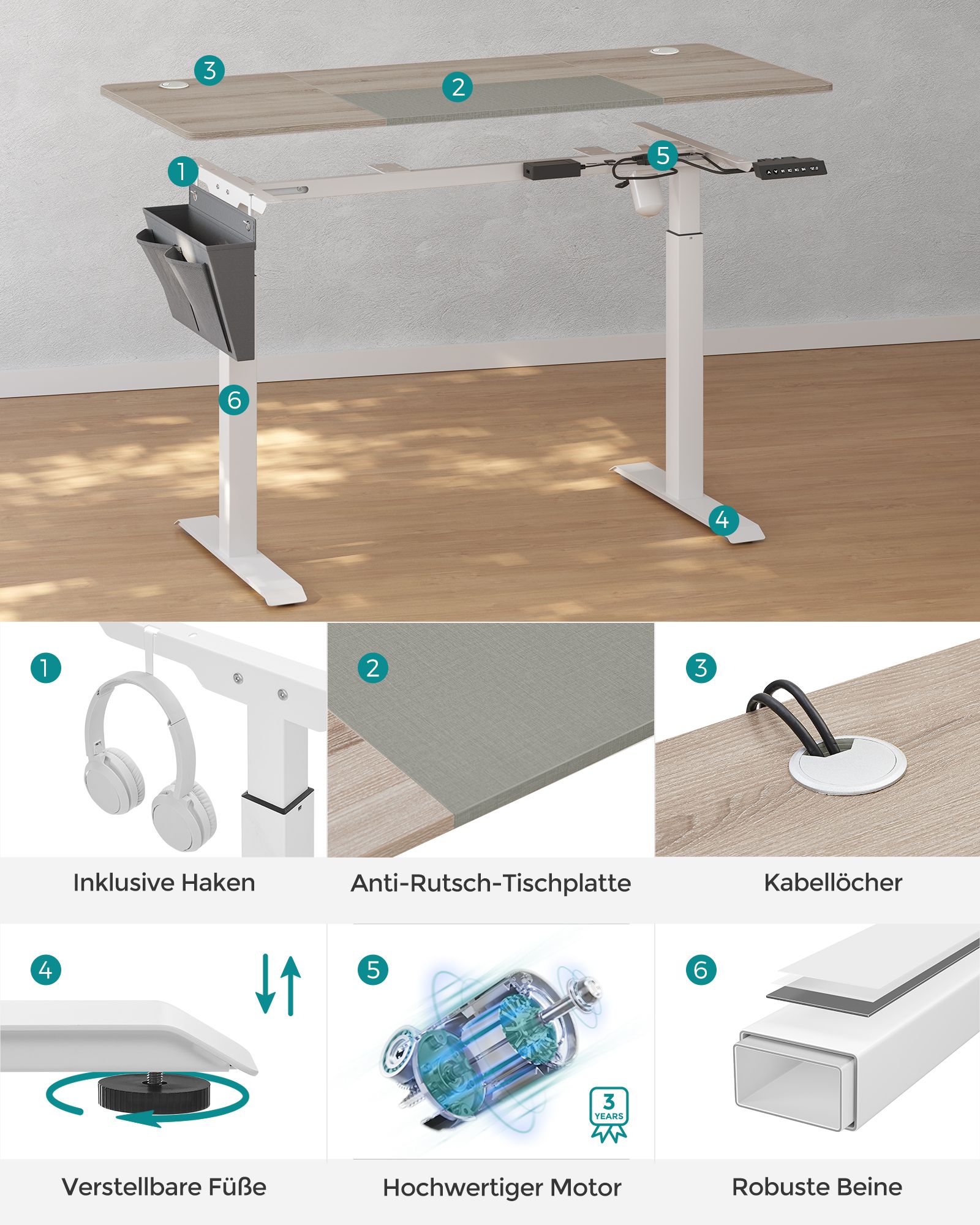 Elektrisk hæve sænkebord med nem montering: Markerede dele og illustrerede instruktioner sikrer ubesværet montering. Så du kan samle hæve sænkebordet på ingen tid.