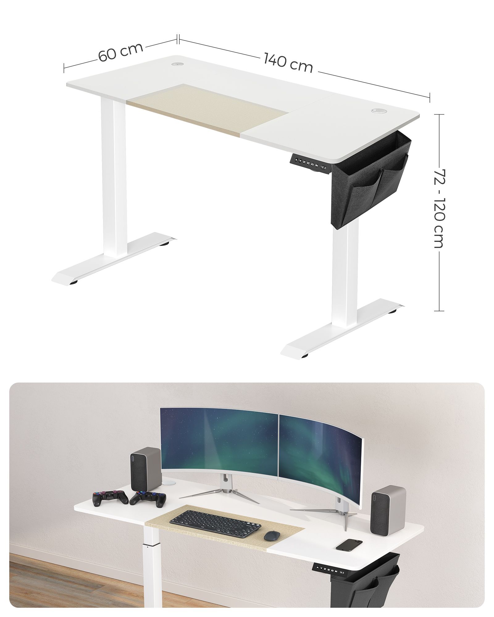 Hæve sænkebord - elektrisk hæve sænke skrivebord - hvid - 60 x 140 x (72-120) cm