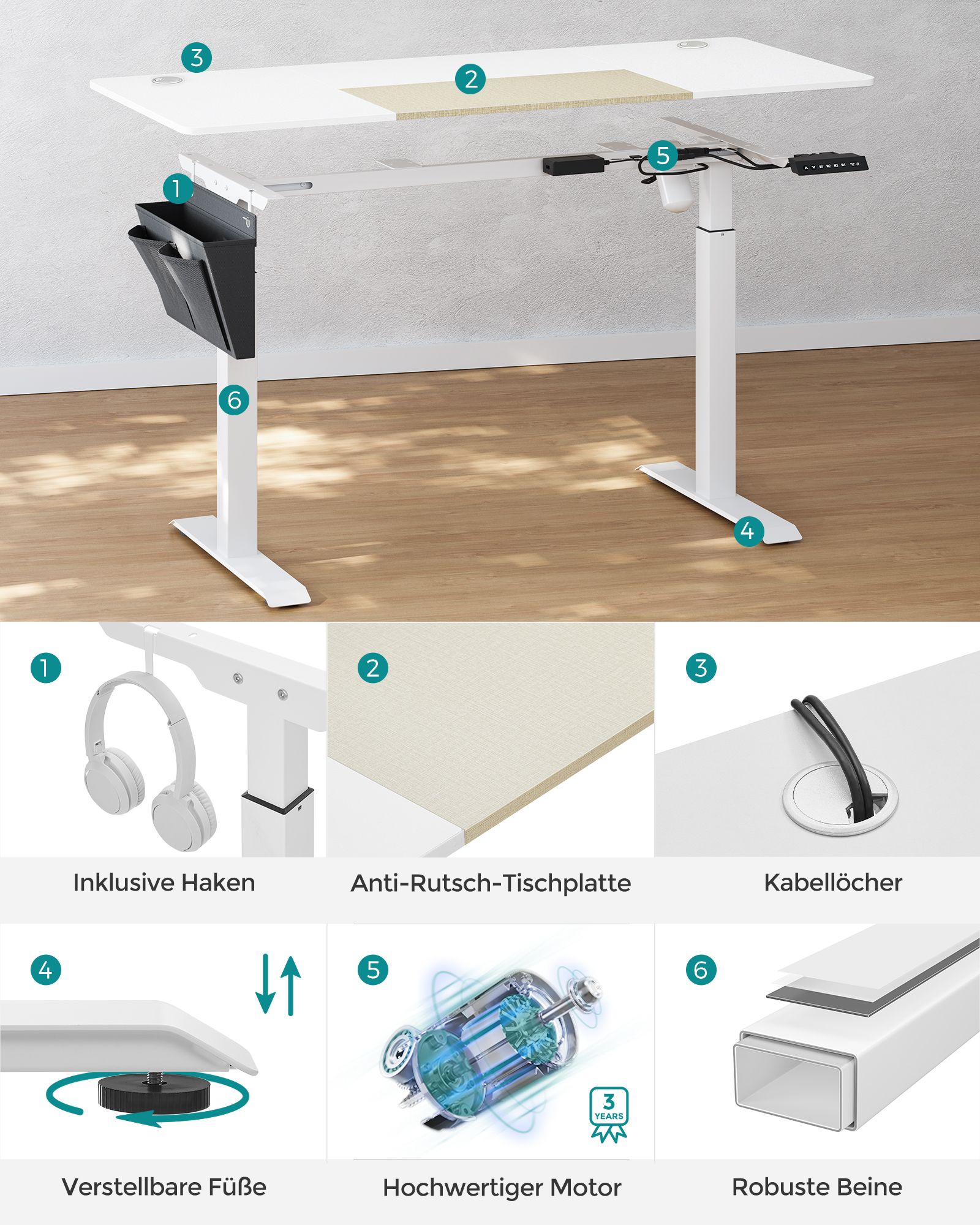 Elektrisk hæve sænkebord med nem montering: Markerede dele og illustrerede instruktioner sikrer ubesværet montering. Så du kan samle hæve sænkebordet på ingen tid.
