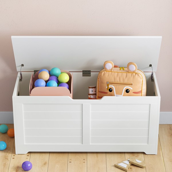Denne hvide opbevaringsboks med god opbevaringsplads, afhjælper dagligdagens udfordringer med rod på børneværelset og i entreen.