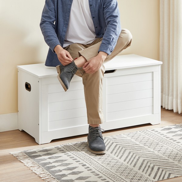 Opbevaringskiste - stor opbevaringsboks - hvid 100 x 46 x 40 cm - siddebænk: