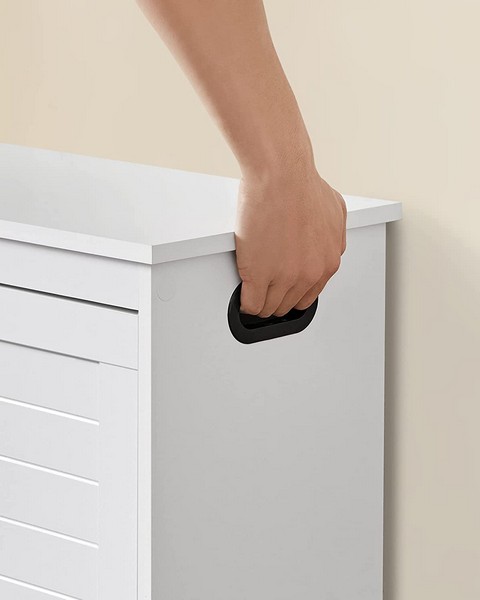 Skobænken har skohylder til skotøj liggende bag et skoskab med hængslede dør og håndtag, og er nem at åbne. Skobænken har 3-vejs højdejusterbare skohylder.