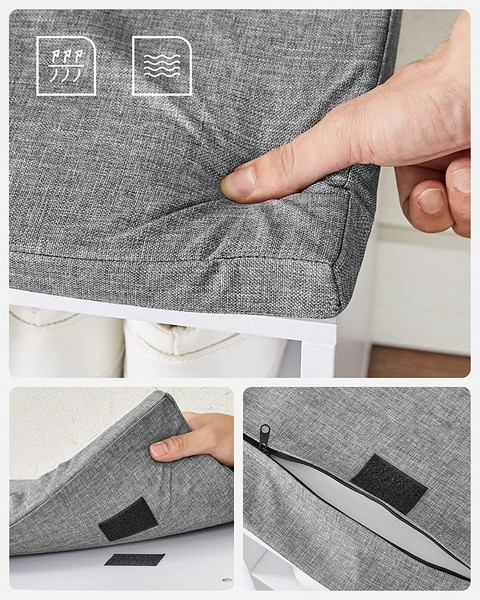 Siddebænk med hynde og skohylder - hvid skobænk med opbevaringsplads og hylder til sko: