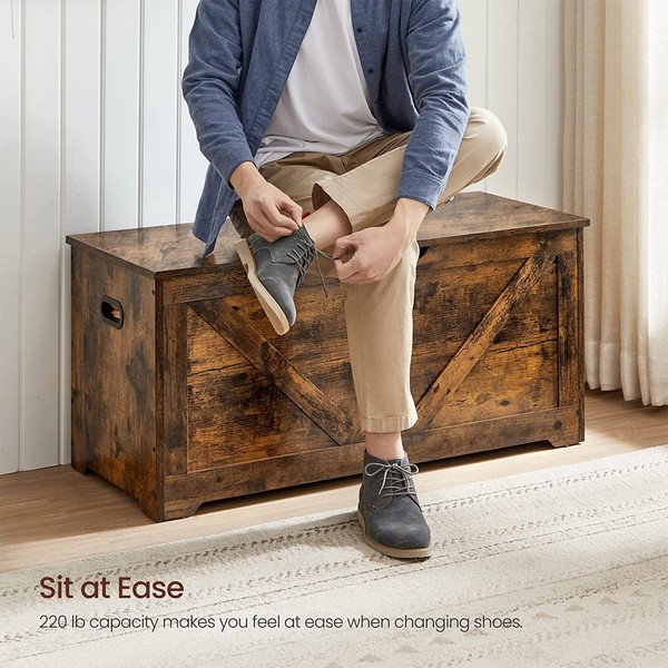 Siddebænk med opbevaringsrum - entrebænk med opbevaring - opbevaringsbænk med opbevaringskiste - rustik brun 100 x 40 x 46 cm