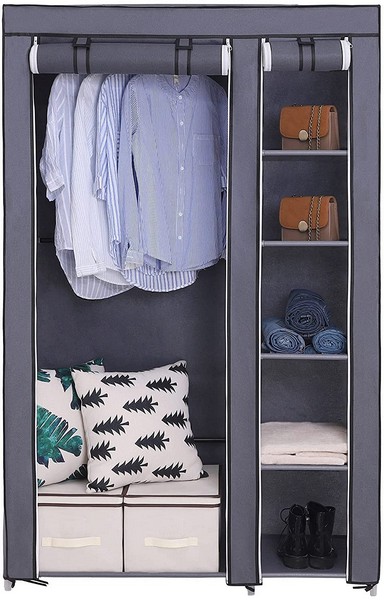 Garderoben i grå stof giver god løsning på uorden i de fleste rum. Den komfortable og praktiske garderobe passer ind i ethvert rum! Du sparer meget plads med