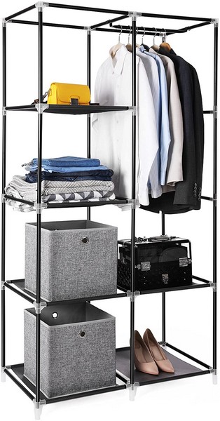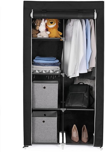 Garderoben i sort stof giver god løsning på uorden i de fleste rum. Den komfortable og praktiske garderobe passer ind i ethvert rum! Du sparer meget plads med