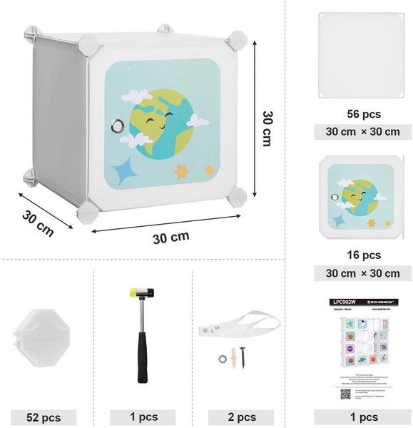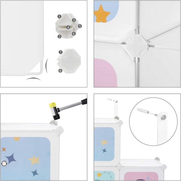 Samling af dette modulære hvide opbevaringsskab med farverige raketter, astronauter og planeter til børneværelset er lettere end at lege med byggeklodser. Med den medfølgende gummihammer og illustrerede instruktioner er dette kubiske skab samlet på minimal tid.