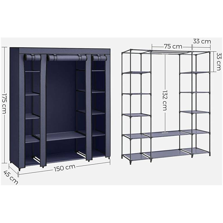 Garderoben i marineblå stof giver god løsning på uorden i de fleste rum. Den komfortable og praktiske garderobe passer ind i ethvert rum! Du sparer meget plads med