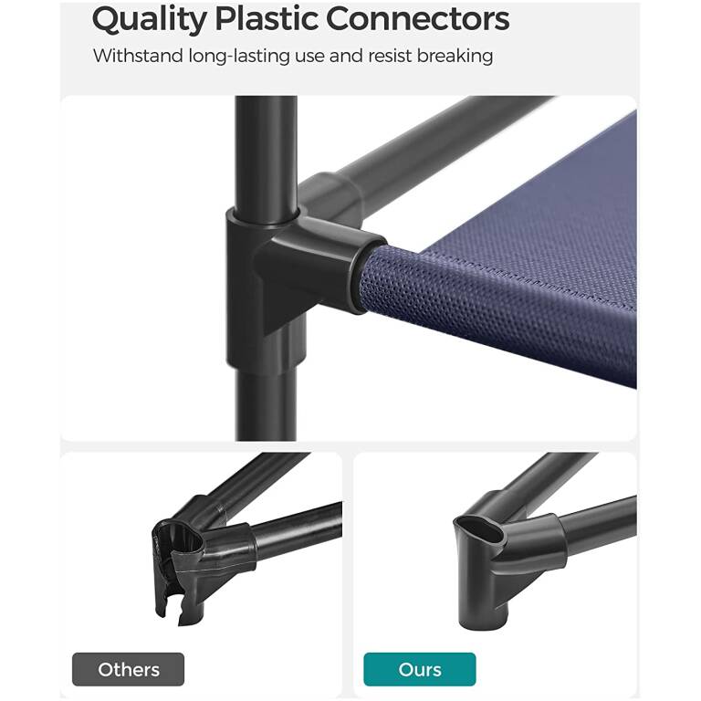Klædeskab i marineblå stof med robust og holdbar konstruktion. Garderobeskabet er lavet af stofbetræk, vandtætte stoflag, højkvalitets stålrør og plastikforbindelser, hvilket gør tøjskabet let og mobilt, så garderoben opfylde de fleste behov - er også velegnet til campingturen, som f.eks. klædeskab i forteltet.