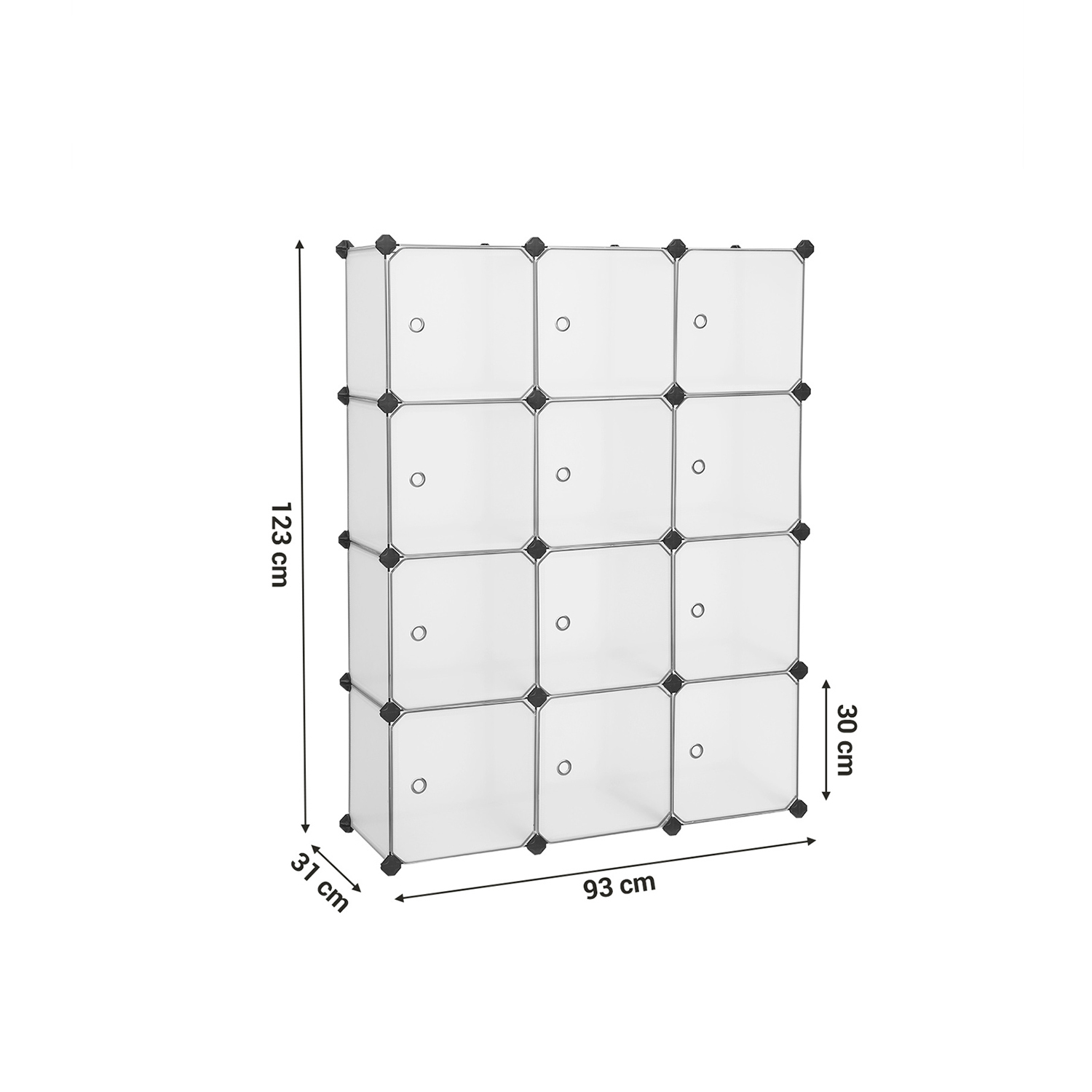 Opbevaringsreol - reolsystem med 12 rum og låger - kubisk reol i plastik - skoreol - hvid plastikreol