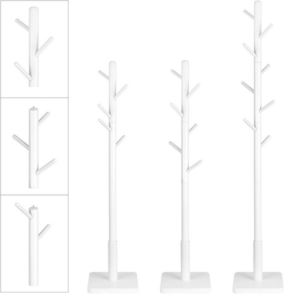 Foden og de øverste 8 arme på frakke stativet er fastgjort til det centrale rør med skruer og stativet kan samles med armene i forskellige højder. Det justerbare entremøbel, med 3 forskellige højdemuligheder, imødekommer en række forskellige brugerbehov. Entremøblet passer perfekt til hvert medlem af familien, optimerer brugen og kan ubesværet tilpasses til din livsstil.