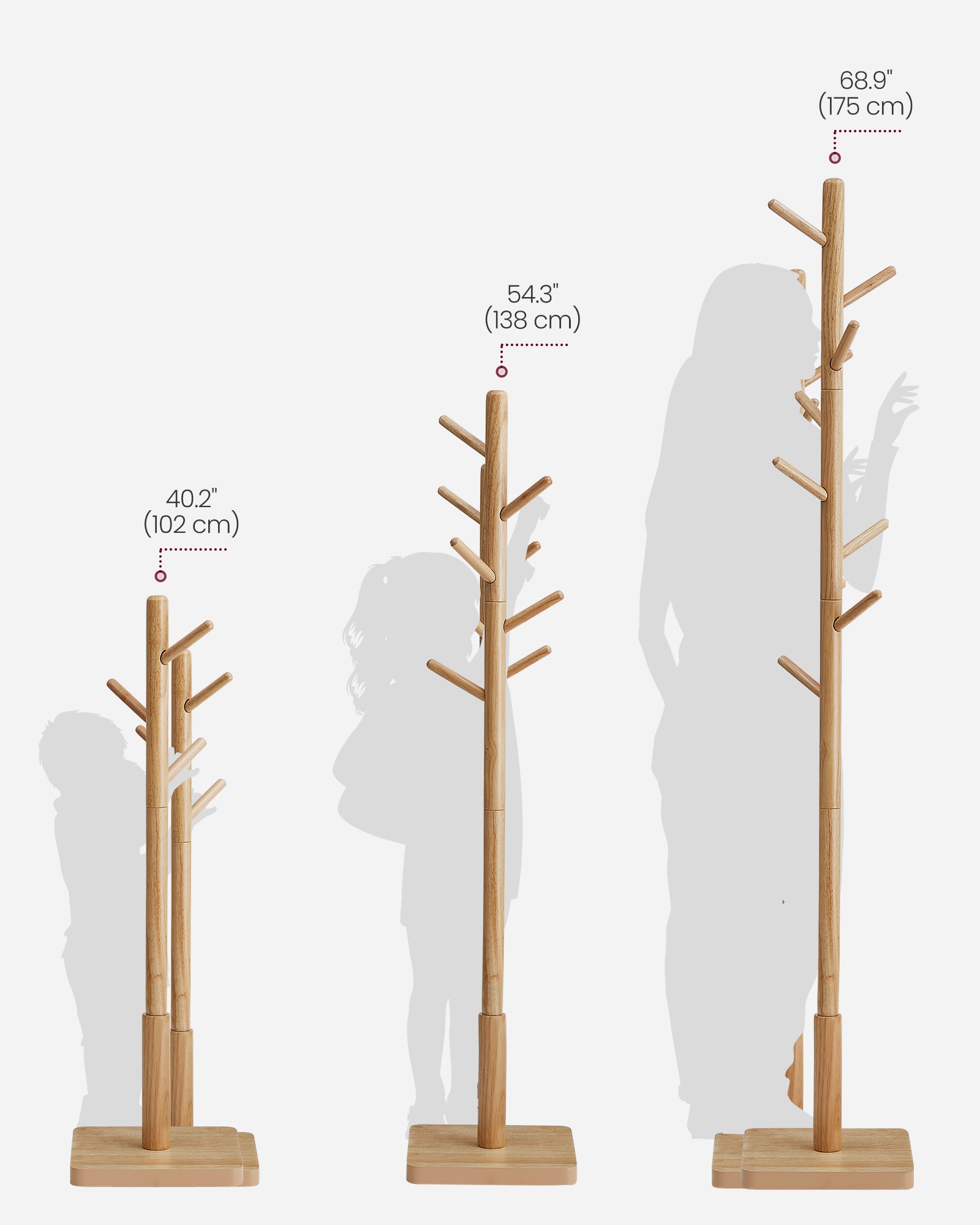 Foden og de øverste 8 arme på frakke stativet er fastgjort til det centrale rør med skruer og stativet kan samles med armene i forskellige højder. Det justerbare entremøbel, med 3 forskellige højdemuligheder, imødekommer en række forskellige brugerbehov. Entremøblet passer perfekt til hvert medlem af familien, optimerer brugen og kan ubesværet tilpasses til din livsstil.