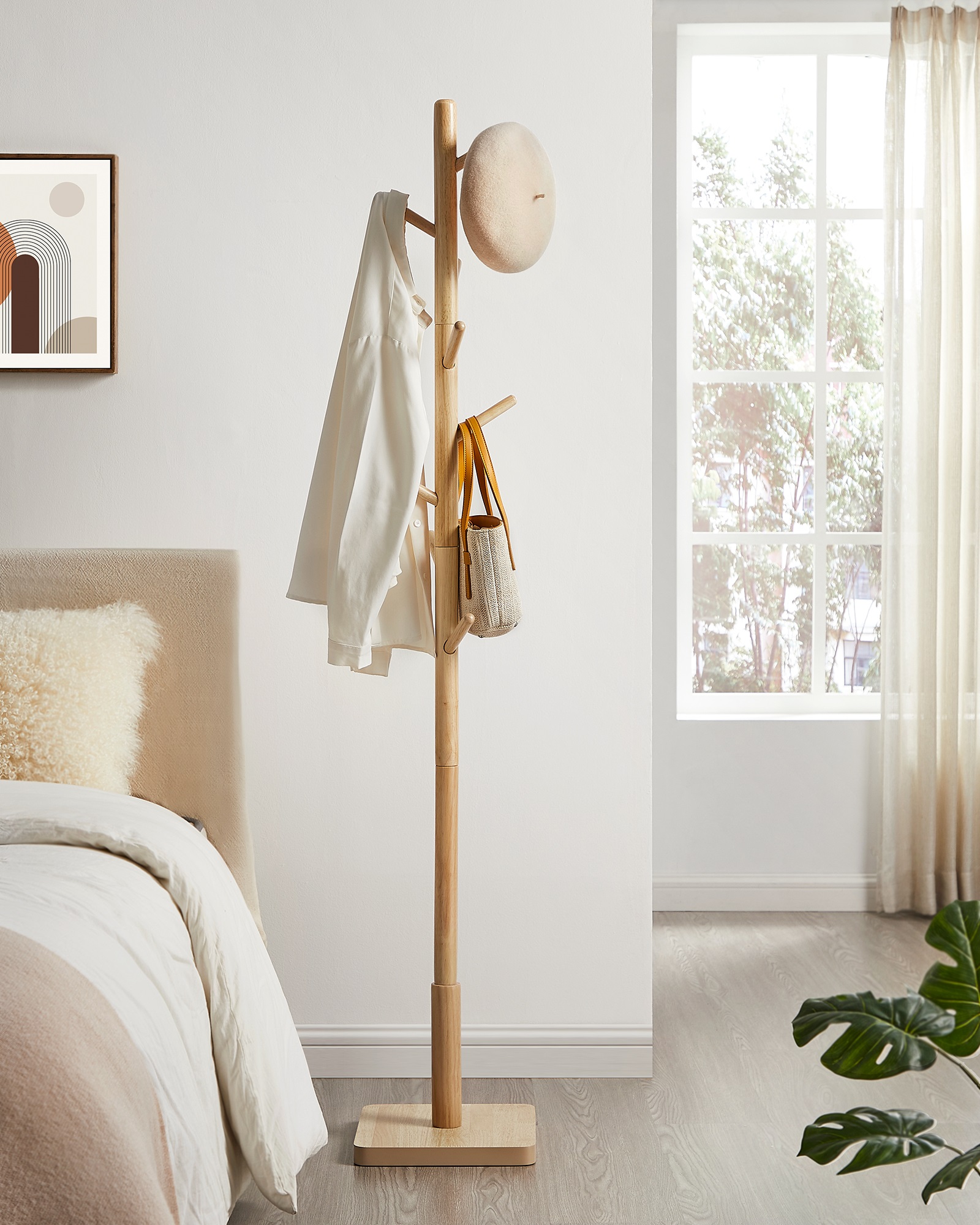Frakke stativet i brun massivt træ tilbyder masser af hængeplads takket være stumtjenerens 8 arme. Det udnytter pladsen og optager kun lidt gulvplads.