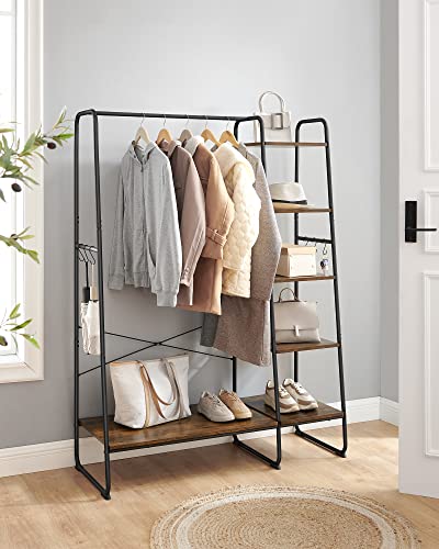 Tøjstativ med bøjlestang, 5 hylder og 6 S-kroge - garderobestativ med tøjstang og skohylde - rustik brun 120 x 45 x 160 cm
