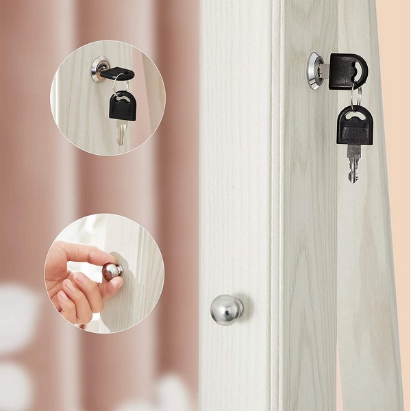 Drejeligt hvidt smykkeskab med spejl og lås - skab med spejl, som er velegnet til soveværelset.
