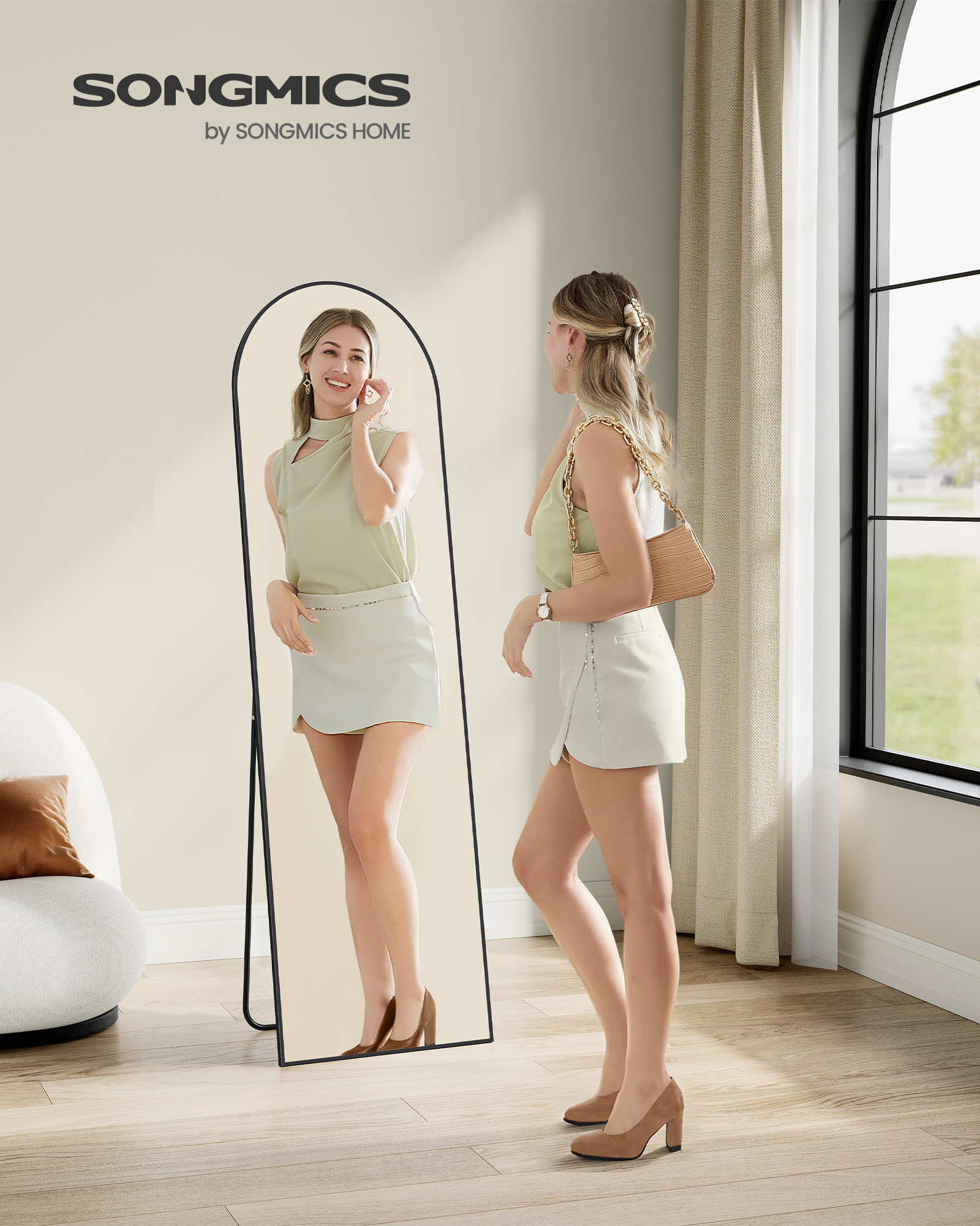 Ingen samling nødvendigt: Dette helfigur spejl i fuld længde er klar til brug og kræver ingen samling. Når gulvspejlet er pakket ud af æsken, så er spejlet klar til brug. Med sin lette ramme kan det stående gulvspejl nemt flyttes og placeres på ethvert ønsket sted i dit hjem.