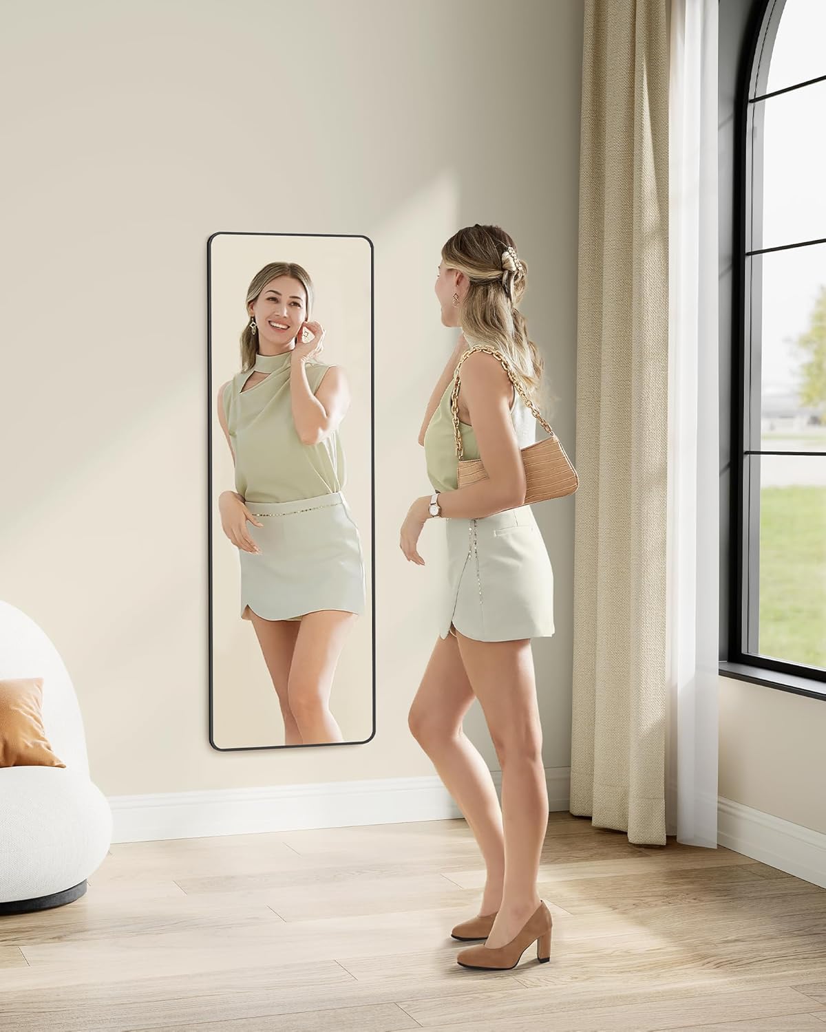 Premium aluminiumsramme: Den robuste aluminiumramme på helfigur spejlet er fremstillet til at modstå rust, samtidig med at den bevarer sin skinnende finish. Helfigur spejlet er også robust nok til at forhindre revner, hvilket sikrer langvarig holdbarhed.