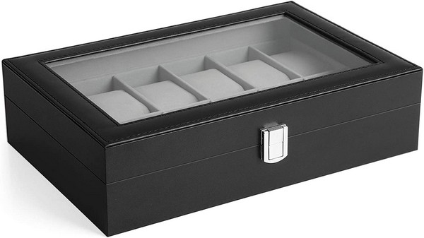 Urboksens gennemsigtigt vindue på toppen gør det meget nemt at se gennem, så du kan overveje, hvilket ur i din samling, der vil se bedst ud med dit outfit, mens du klæder dig på.