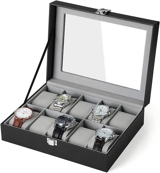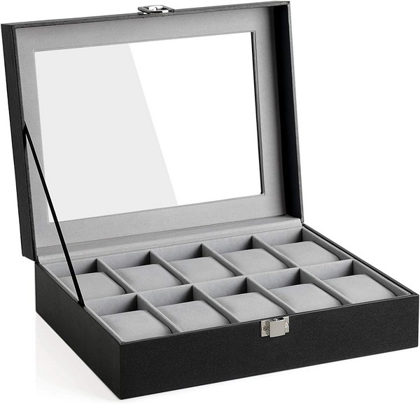 Urboksens gennemsigtigt vindue på toppen gør det meget nemt at se gennem, så du kan overveje, hvilket ur i din samling, der vil se bedst ud med dit outfit, mens du klæder dig på.