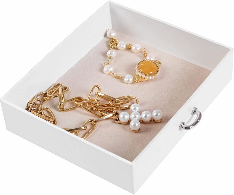 Det minimale design og den neutrale hvide farve gør dette smykkeskrin til et enkelt og elegant opbevaringssted, der ikke stjæler scenen for dine smykker, men i stedet udtrykker din gode smag.