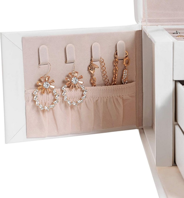 Med øverste rum til øreringe og ringe, skuffer til smykker og ure, sidekamre med plads til bl.a. halskæder og dertil stort spejl har dette store smykkeskrin den plads, du skal bruge til at opbevare et utal af dine smykker.
