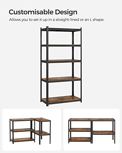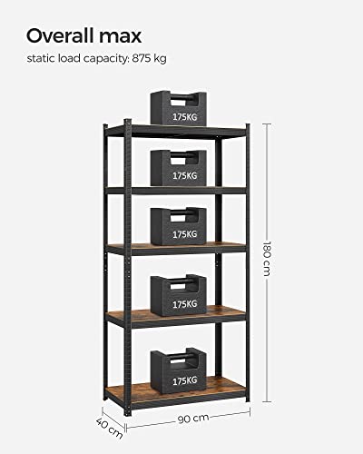 Stålreol til 875 kg i industrielt design - delbar lagerreol med justerbare hylder - sort og rustik brun reol i stål 180 x 90 x 40 cm