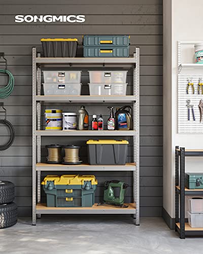 Stålreol til 875 kg i industrielt design - delbar lagerreol med 5 justerbare hylder - sølv og brun reol i stål 200 x 120 x 60 cm