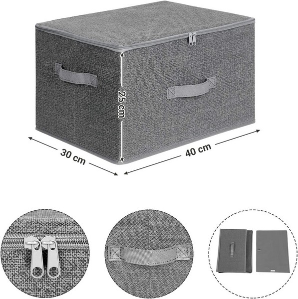 Ligger dine ejendele over det hele igen, selvom du lige har ryddet grundigt op i dit hjem? Så er det tid til at opbevare dine ejendele pænt på ét sted. Disse 3 foldbare stofkasser med låg og lynlås bringer orden i dit hjem.