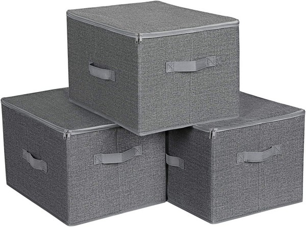 Hvad du får: 3 stofkasser med låg og lynlås, som er lette at folde sammen og opbevare for at spare plads, når de ikke er i brug, og en måde at opbevare dine ting på, som minimere rod i dit hjem.