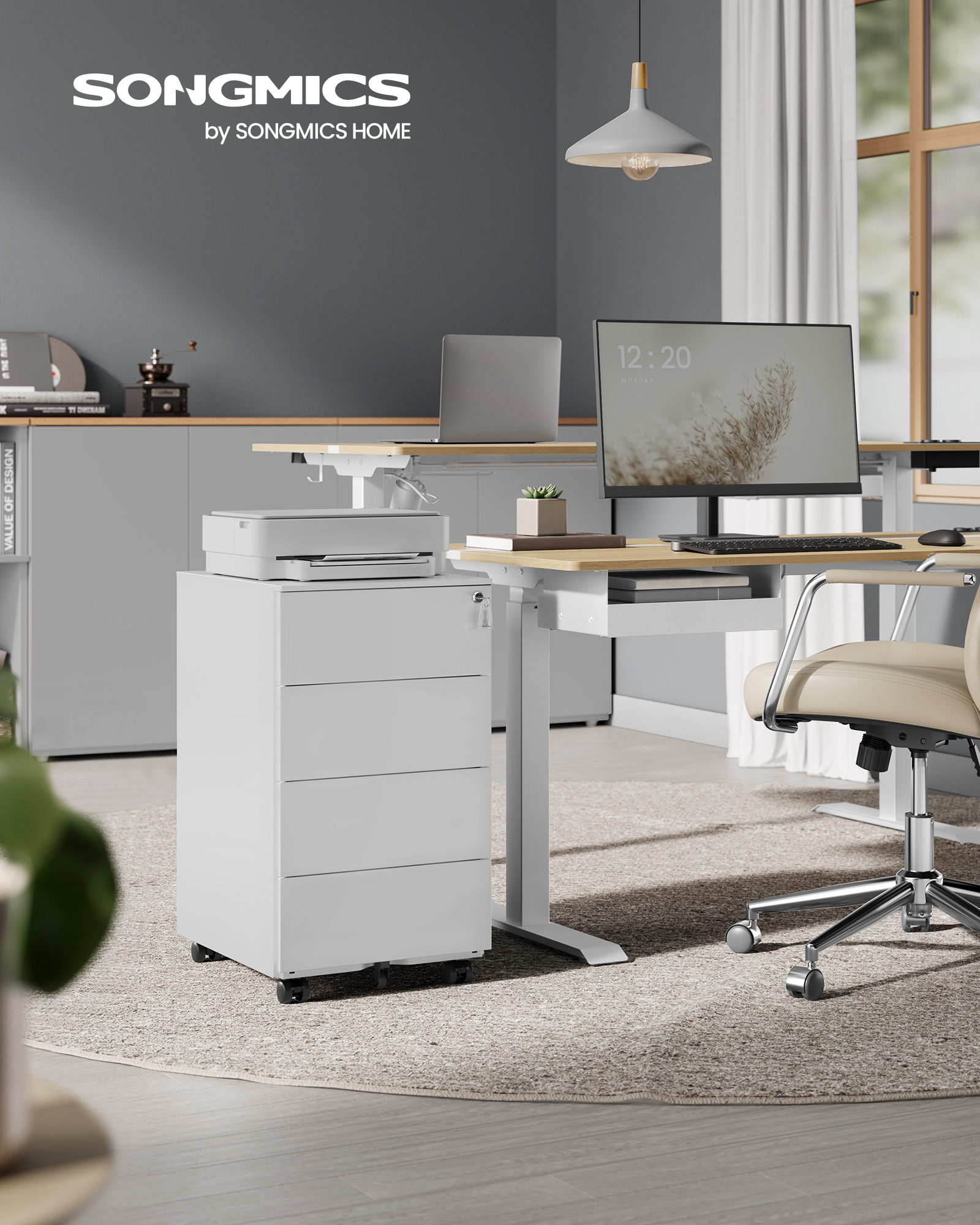 Alt på ét sted: Flyder dit skrivebord med bunker af papirer? Dette hvide mobile arkivskab på 39 x 45 x 69,3 cm fylder ikke meget, men løser udfordringen med bunker af papirer. Med arkivskabets 4 skuffer har du nemt plads til dine papirer og låsen på den øverste skuffe forbedrer sikkerheden.