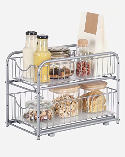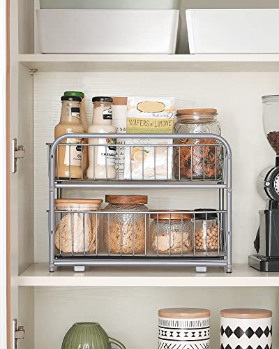 Opbevaringskurve - 2 justerbar udtrækskurve til opbevaring i skab og på bord - grå metal